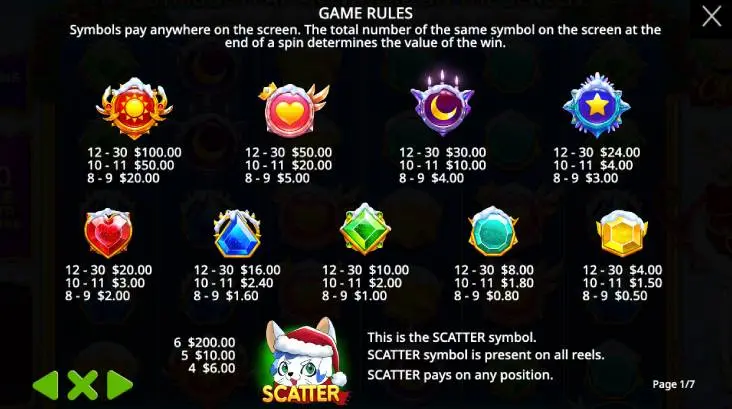 Here’s the main thing you need to know: the Starlight Christmas™ pokies uses a scatter pays system on its 6x5 grid. That means you don’t have to worry about paylines - just land 8 or more matching symbols anywhere, and you’ll score a win. It’s a different vibe from the old-school “line ‘em up left to right” pokies, and honestly, it keeps things interesting, especially if you get bored easily like me.